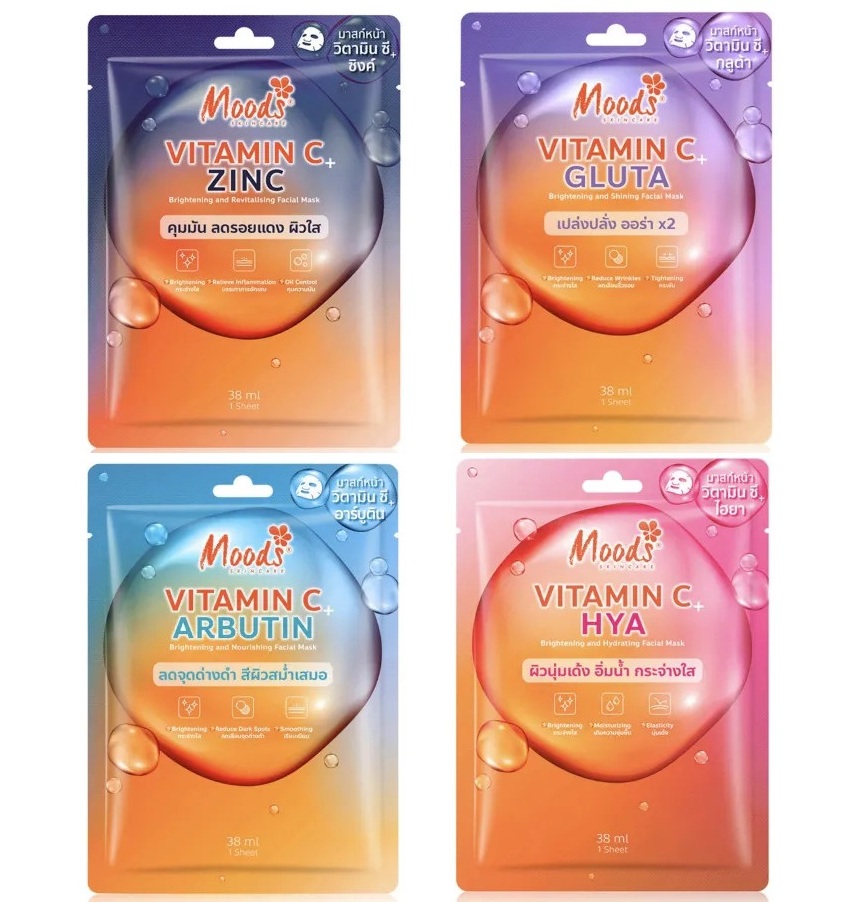Освежающая и восстанавливающая маска для лица с витамином С, арбутином, цинком, глутатионом или гиалуроновой кислотой Moods