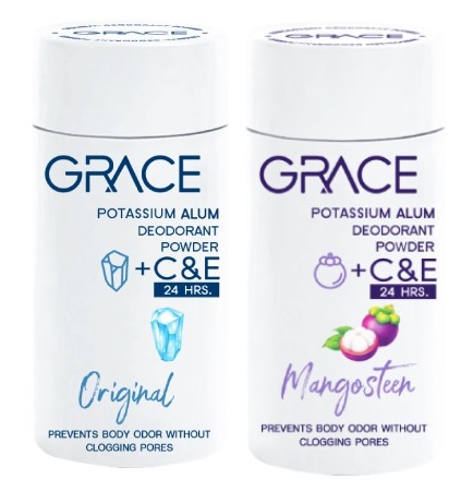 Тайский квасцовый дезодорант тальк Grace ( Грейс ) Натуральный + витамины С и Е - минеральный, природный дезодорант, состоящий из натуральных компонентов, препятствует возникновения неприятного запаха. Дезодорант пудра подходит для мужчин, для женщин, для беременных и кормящих матерей. Можно использовать подросткам, мальчикам и девочкам. Дезодорант эффективен после интенсивных нагрузок, в том числе, для занятий спортом.