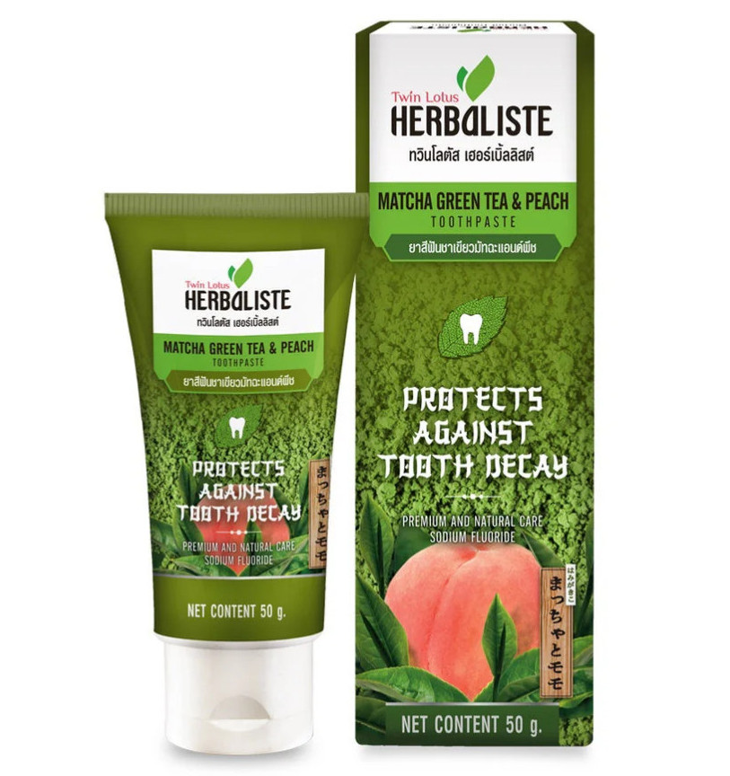 Зубная паста от Twin Lotus Herbalist с зеленым чаем матча и персиком сокращает количество бактерий в ротовой полости и оставляет хорошие микроорганизмы, благодаря чему эффективно предотвращает кариес. При регулярном применении паста укрепляет зубную эмаль, снижает чувствительность зубов, уменьшает неприятный запах изо рта и надолго освежает дыхание.